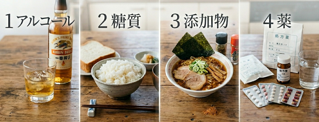 肝臓はこれらを「毒」と判断し24時間、解毒作業で疲弊しています。